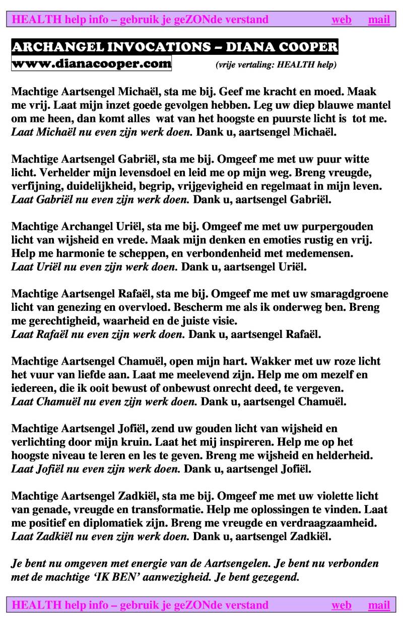 uitleg volgt. NB: Aartsengel invocatie staat ook onderaan op de page RUST.